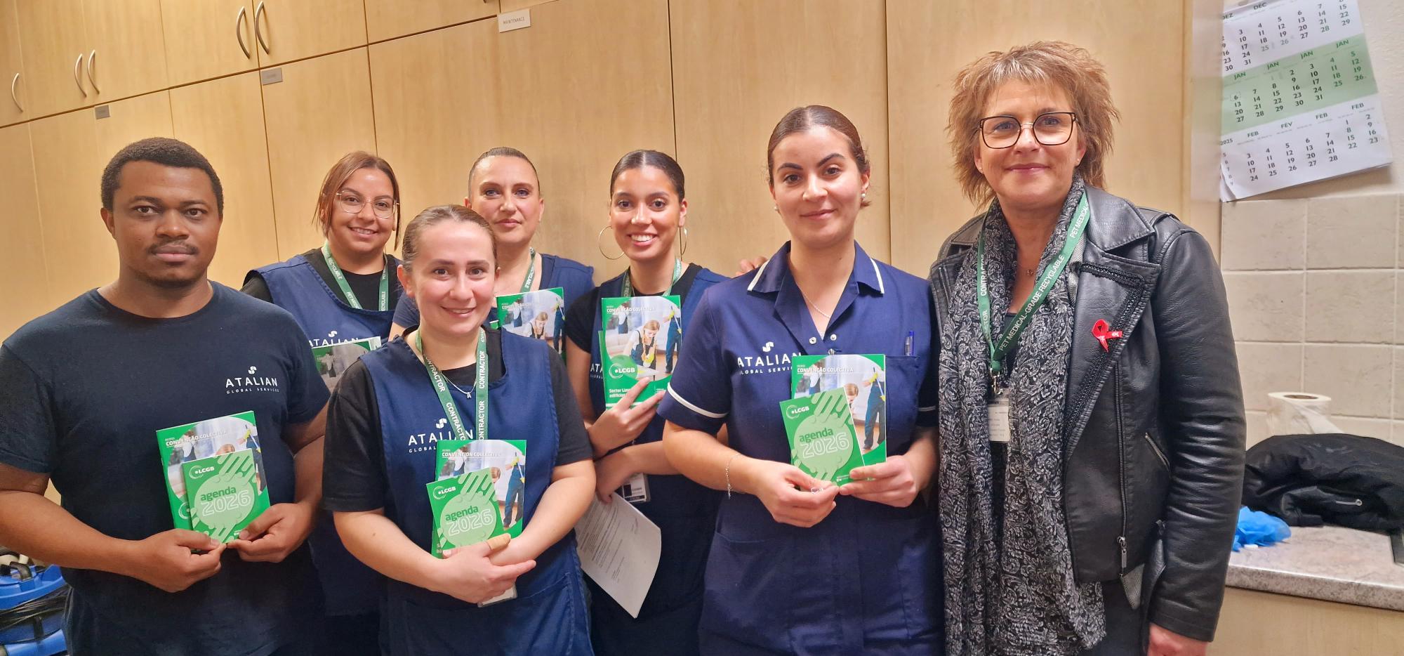 Die LCGB-Delegierten der Unternehmen ABSC, Atalian, ISS Facility Services, Samsic Facility und Wisag trafen zahlreiche Kollegen, um mit ihnen über die Arbeitsbedingungen zu sprechen und eventuelle arbeitsrechtliche Fragen zu beantworten. Weiterhin wurden die Mitarbeiter über die Forderungen der Gewerkschaften zu den Diskussionen rund um die Arbeitszeiten informiert.