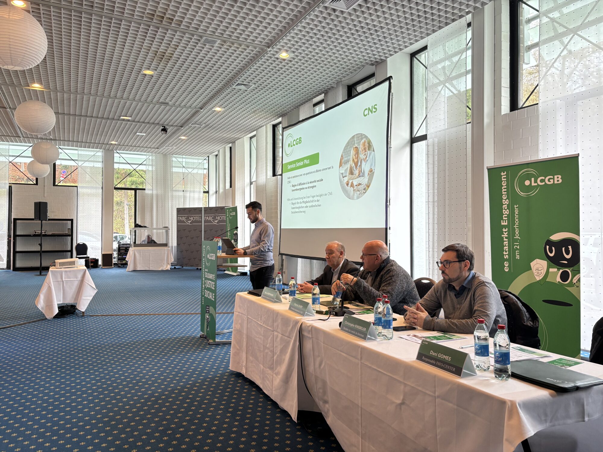 Nach einer kurzen Begrüßung durch Nico HOFFMANN, Vorsitzender der LCGB-Rentnerkommission, stellte Dani GOMES, der Verantwortliche für das INFO-CENTER den neuen Service Senior Plus vor, für langjährige Mitglieder, die Fragen zur Kranken- oder Rentenkasse haben oder Probleme mit der Pflegeversicherung oder Hilfe bei administrativen Vorgängen brauchen.