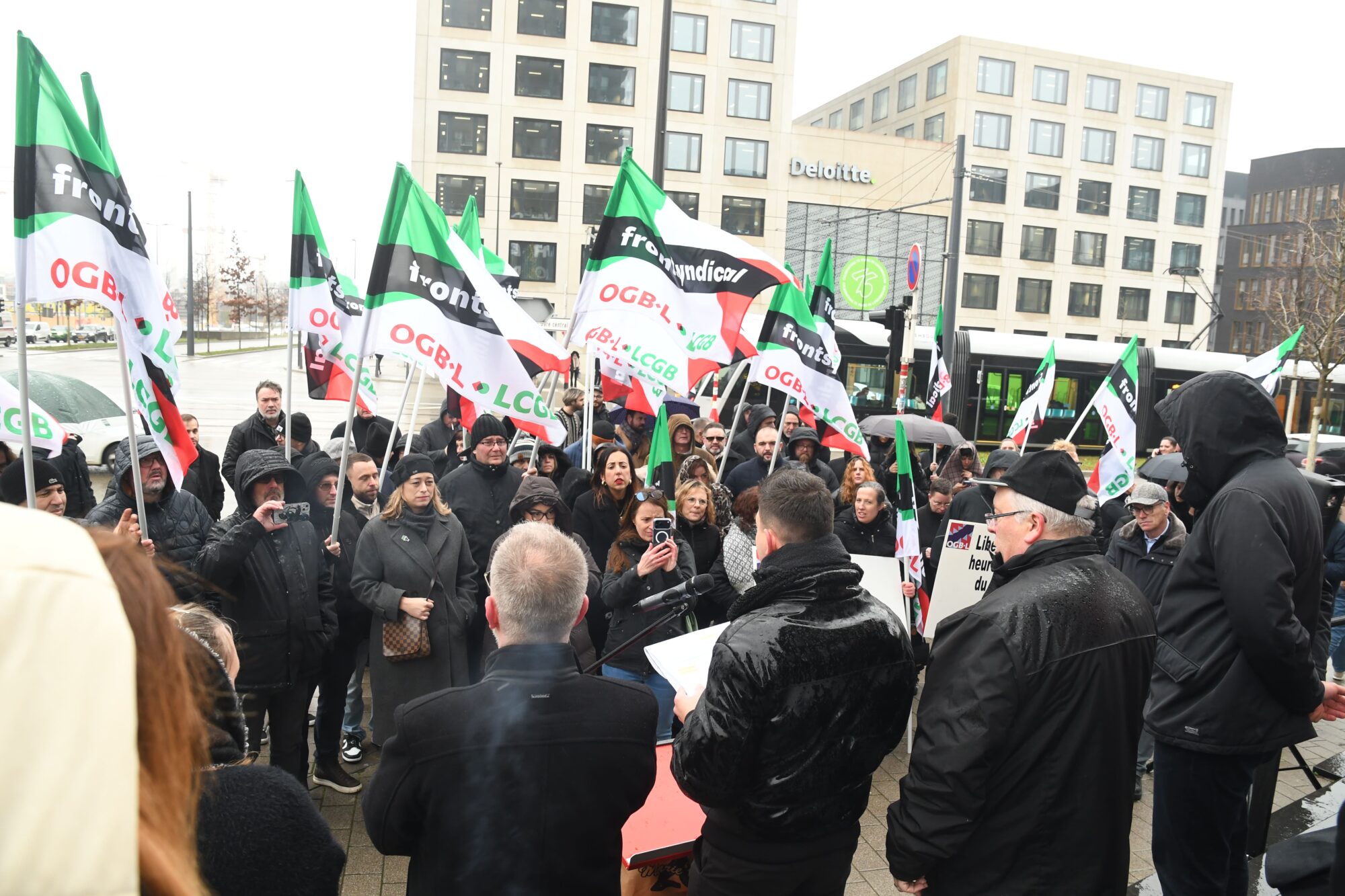 Der OGBL und der LCGB haben heute eine Protestkundgebung vor dem Einkaufszentrum Cloche d’Or organisiert, um gegen die Haltung der Geschäftsführung von ITX (Zara, Bershka, Pull & Bear, Stradivarius, Massimo Dutti und Zara Home) gegenüber ihren Mitarbeitern zu protestieren. Dafür wurde gezielt der Black Friday, einer der umsatzstärksten Tage im Handel gewählt.