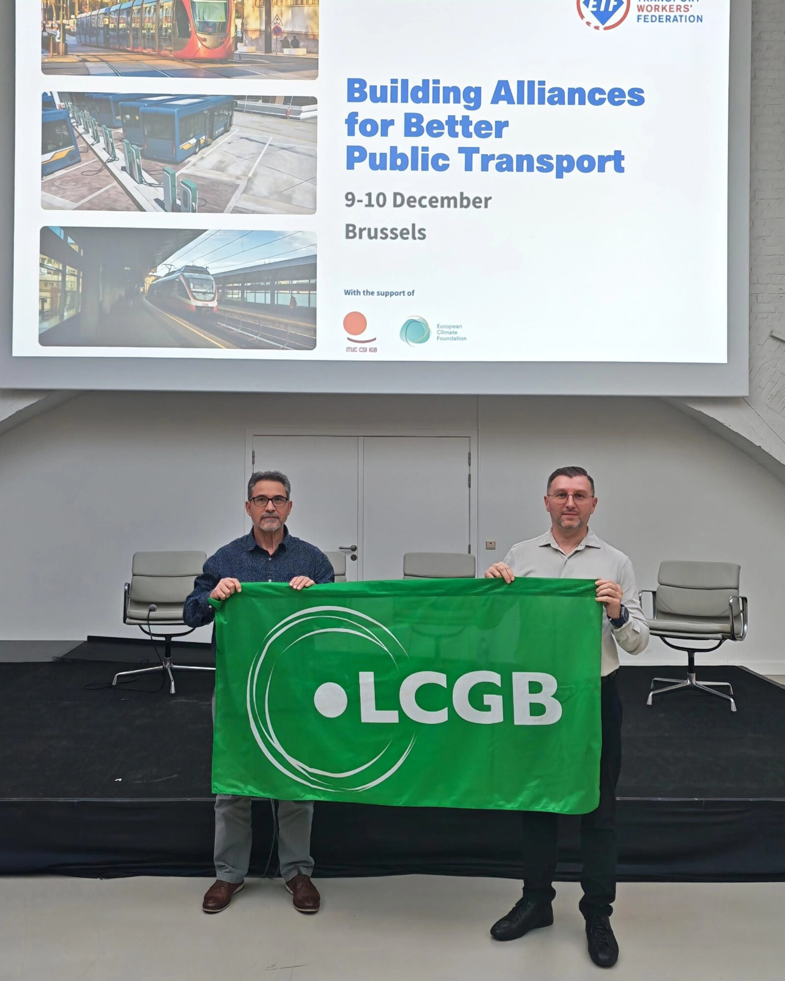 Am 9. Und 10. Dezember nahm der LCGB an einer von der Europäischen Transportarbeiter-Föderation (ETF) organisierten Konferenz in Brüssel teil, die zahlreiche Akteure zum Thema öffentlicher Transport erfolgreich zusammenbrachte. Gewerkschaften, Umweltaktivisten, Nutzerverbände, Arbeitgeber und politische Entscheidungsträger, darunter die Europaabgeordnete Lena Schilling, diskutierten Gemeinsamkeiten, Ziele und Strategien zur Entwicklung eines nachhaltigen, zugänglichen und sozial verantwortlichen öffentlichen Transports in Europa.