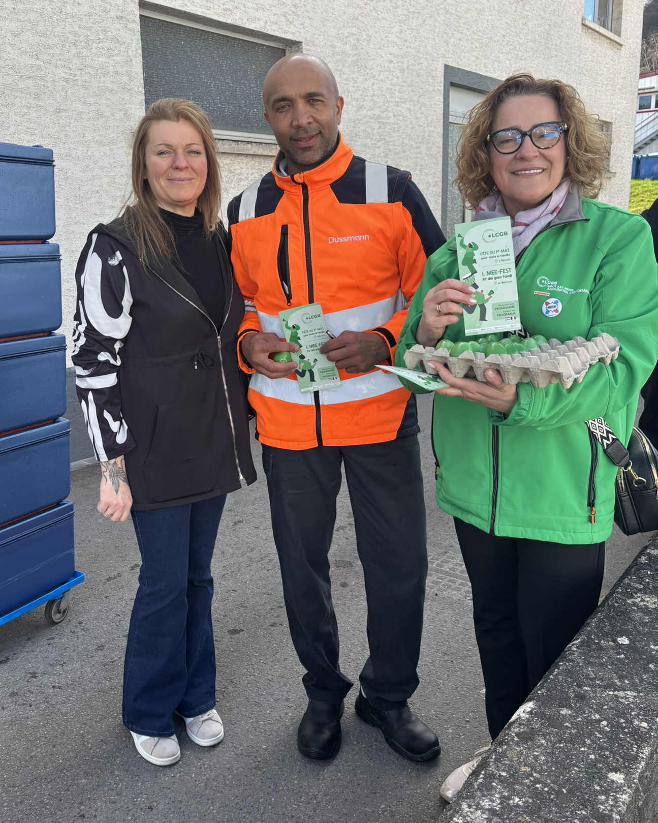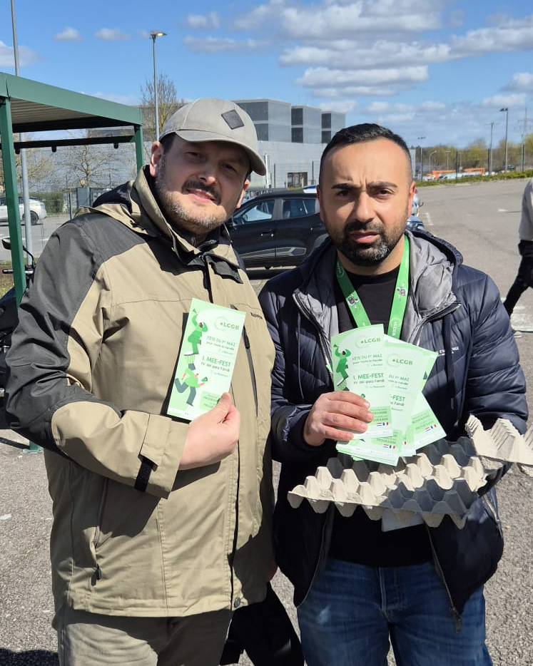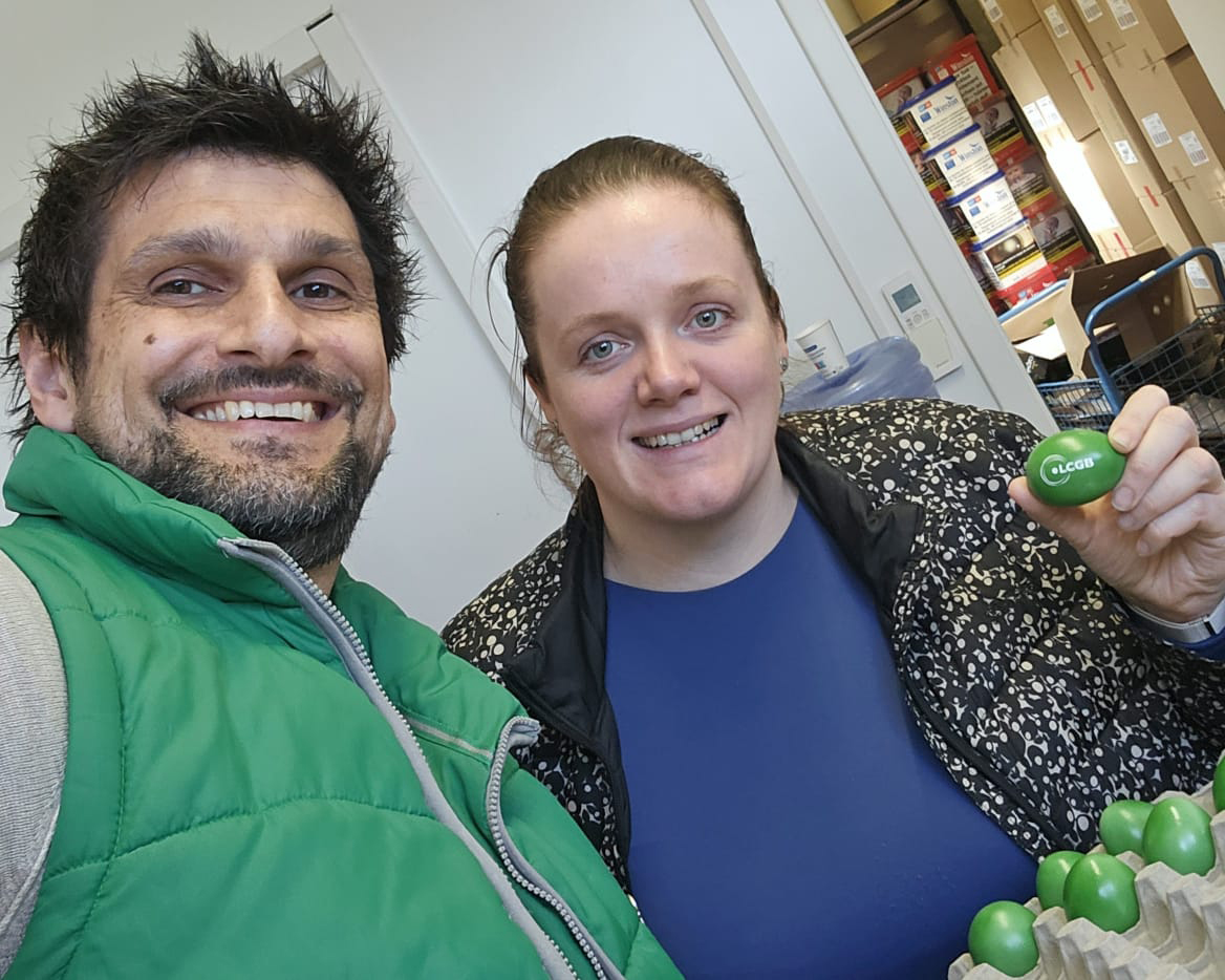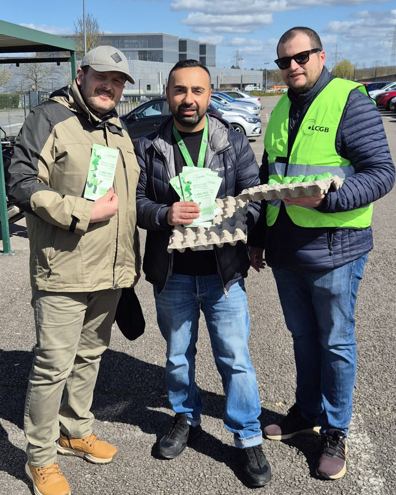 Der LCGB hat eine große Ostereier-Verteilaktion für die Beschäftigten verschiedener Unternehmen und Branchen organisiert. Bei den Besuchen tauschten sie sich mit den Beschäftigten über die aktuelle Politik der Regierung aus, die die Rechte der Arbeitnehmer attackiert.