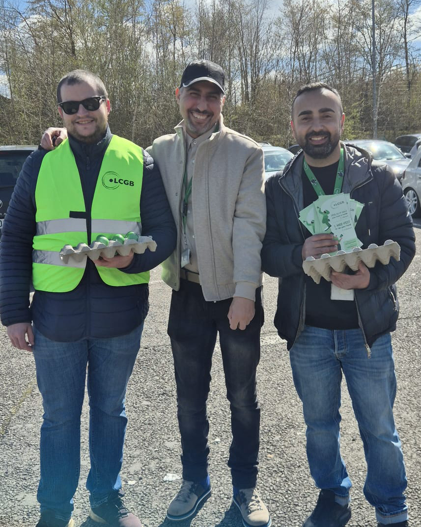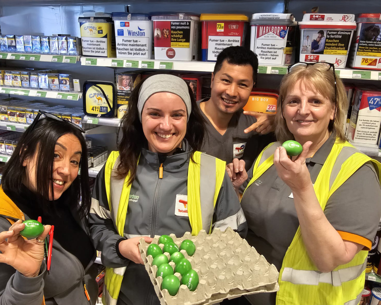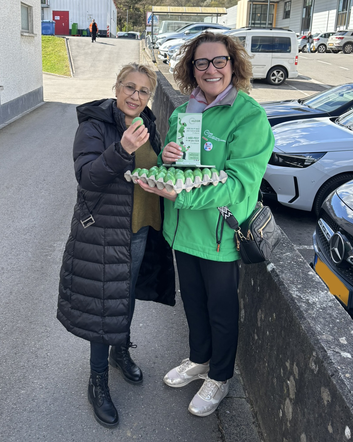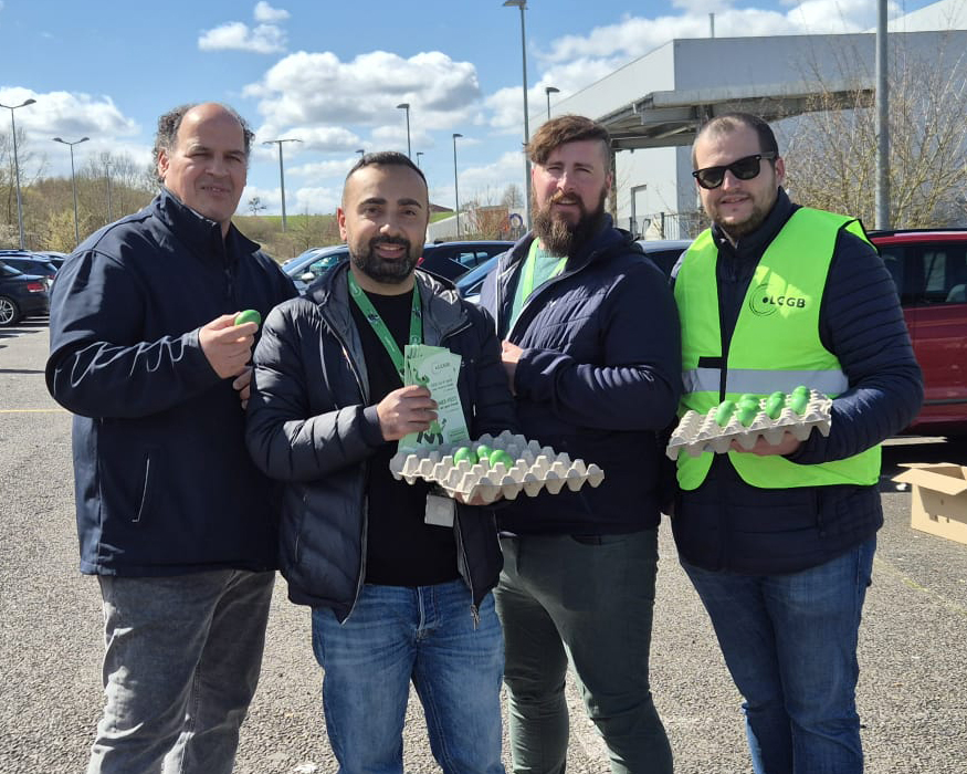 Der LCGB hat eine große Ostereier-Verteilaktion für die Beschäftigten verschiedener Unternehmen und Branchen organisiert. Bei den Besuchen tauschten sie sich mit den Beschäftigten über die aktuelle Politik der Regierung aus, die die Rechte der Arbeitnehmer attackiert.