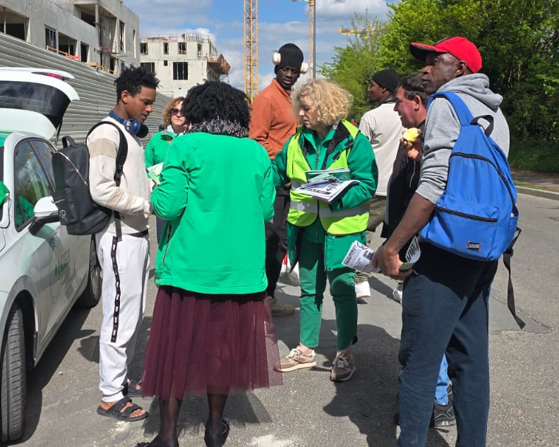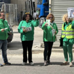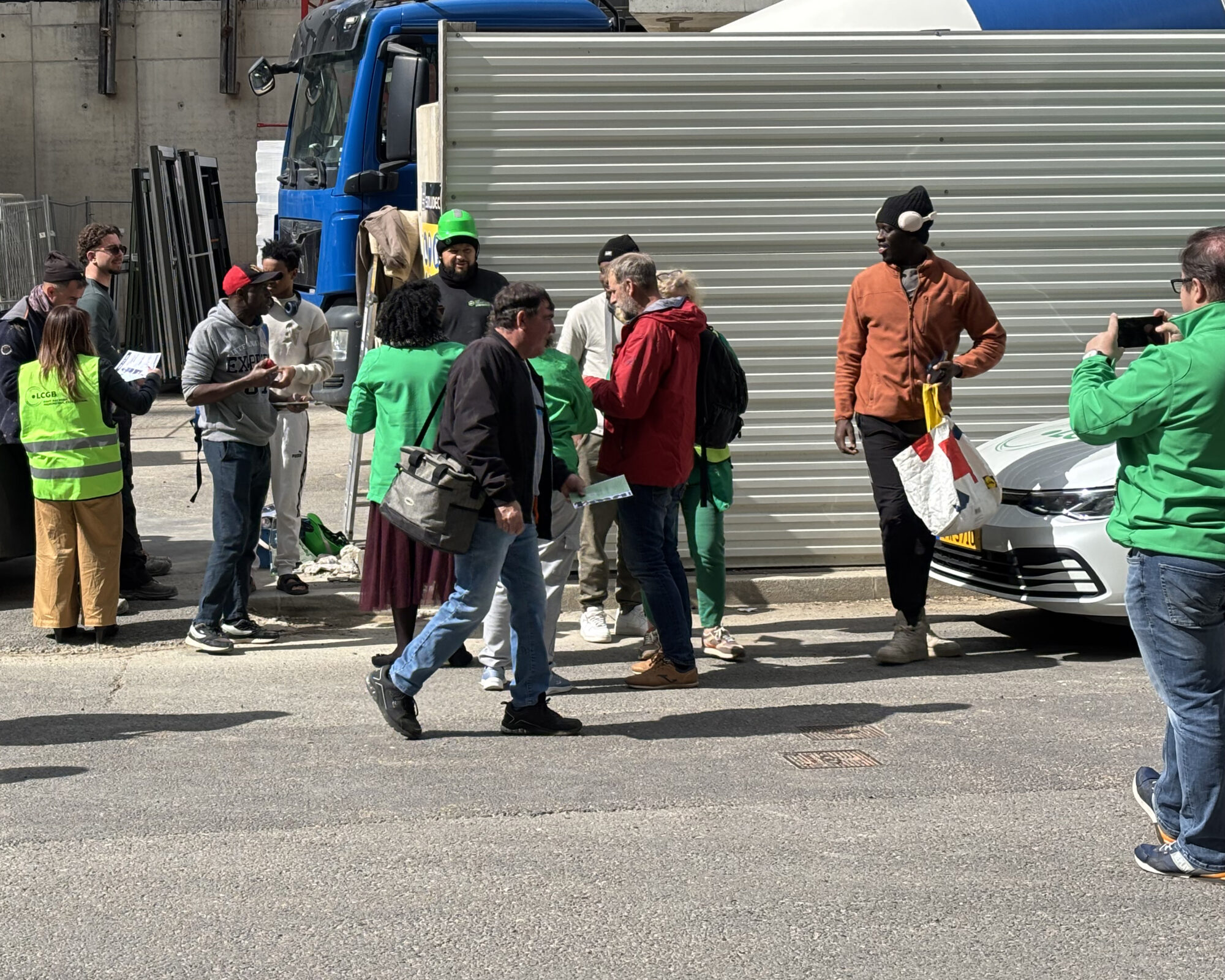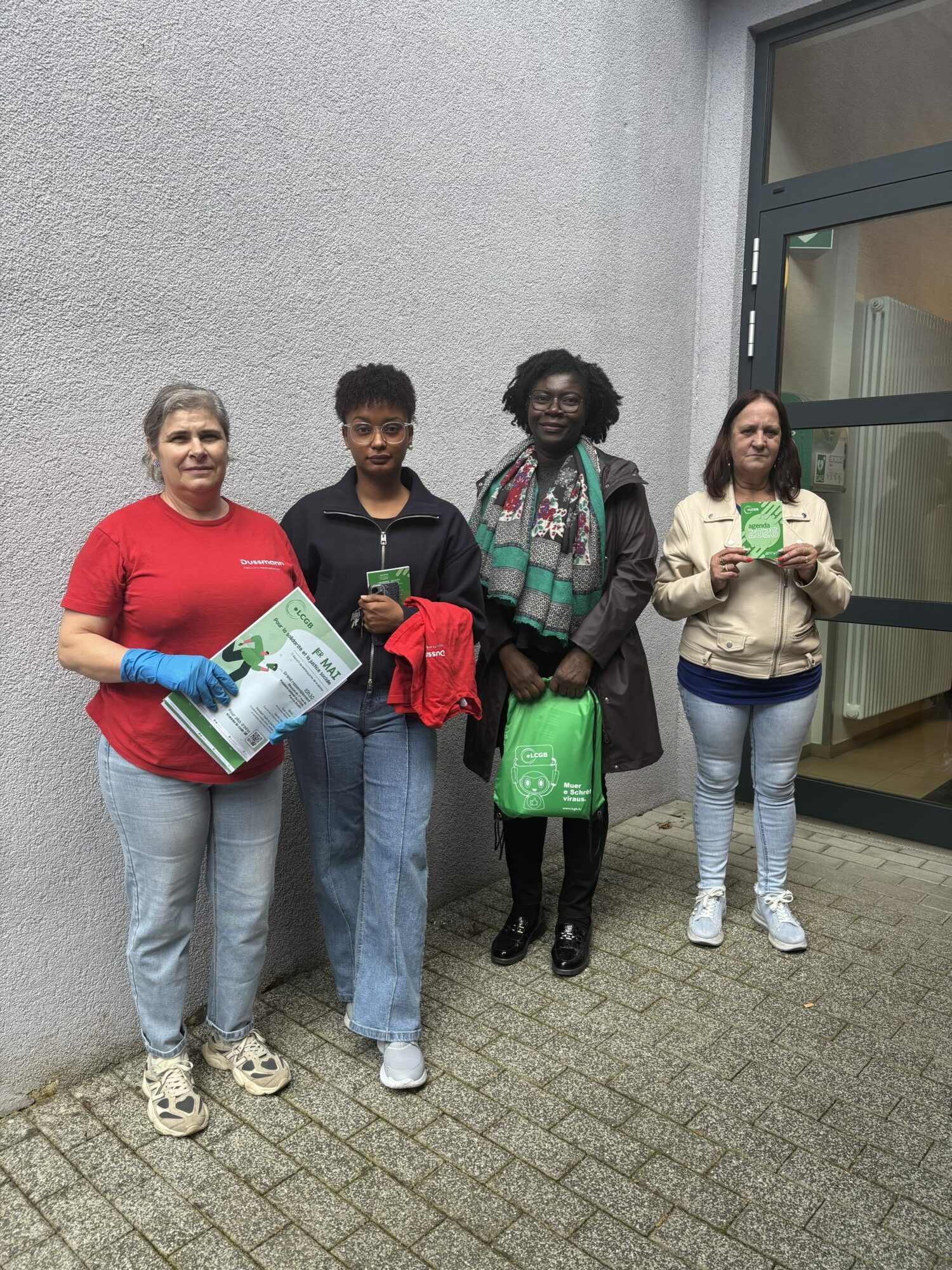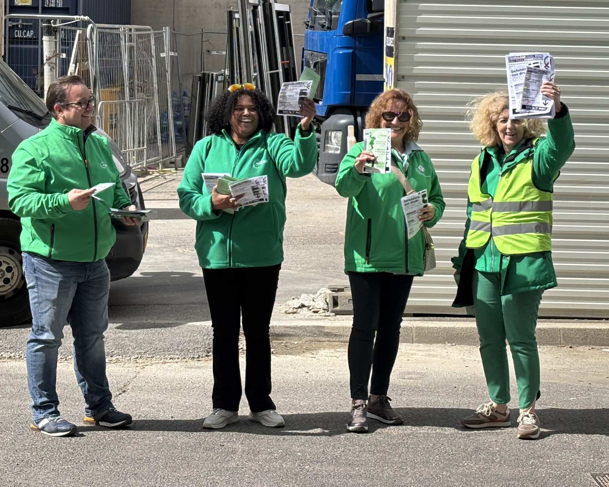 Im Rahmen einer Informationstour bei Atalian Global Services, Dussmann Service, und anderen Reinigungsunternehmen händigten die Delegierten und den Beschäftigten Informationsmaterial aus.