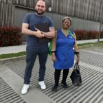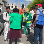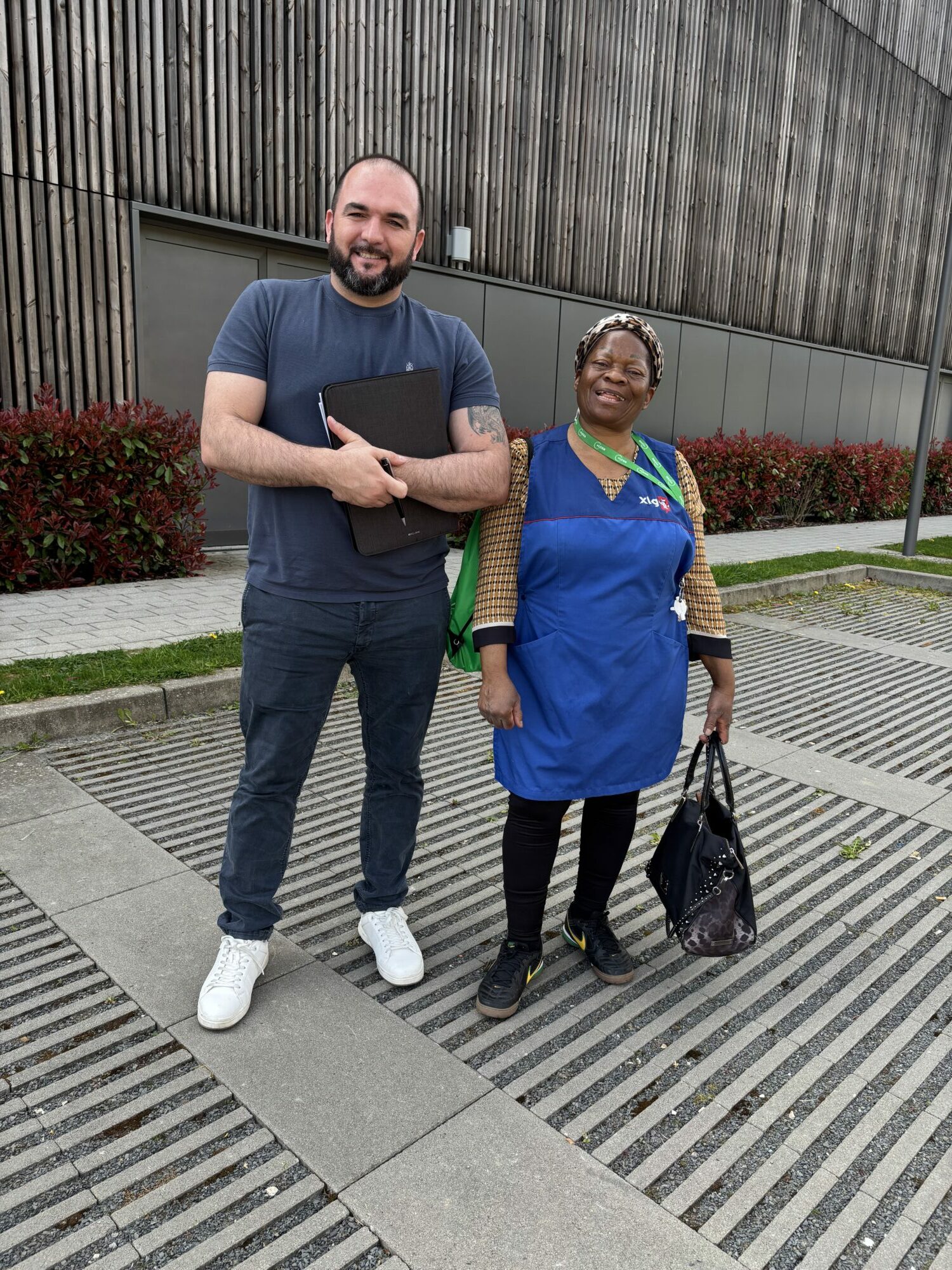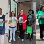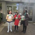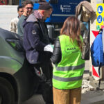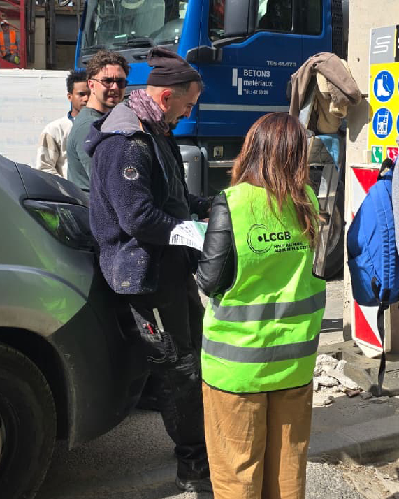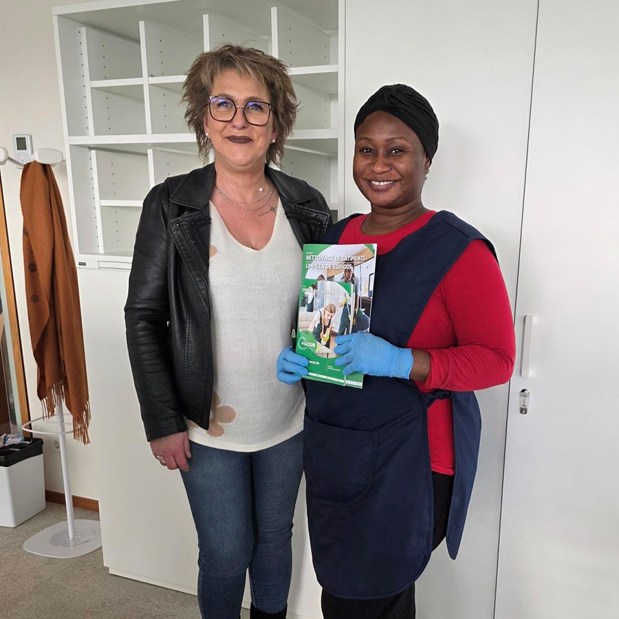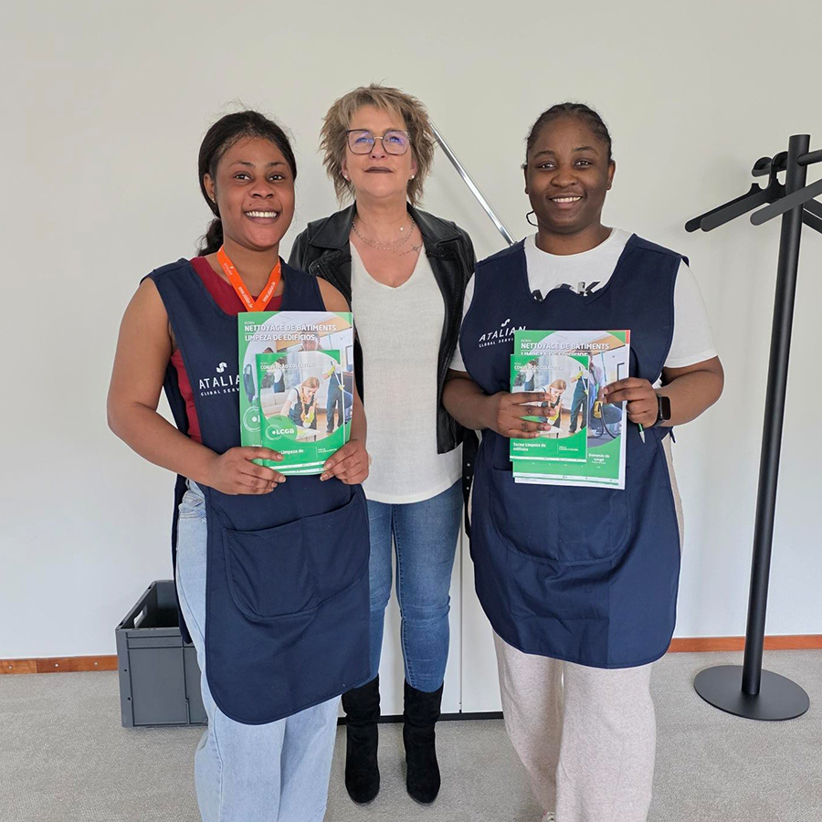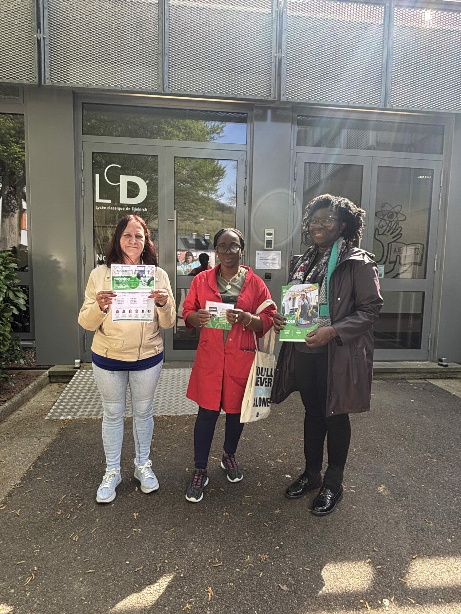 Im Rahmen einer Informationstour bei Atalian Global Services, Dussmann Service, und anderen Reinigungsunternehmen händigten die Delegierten und den Beschäftigten Informationsmaterial aus.