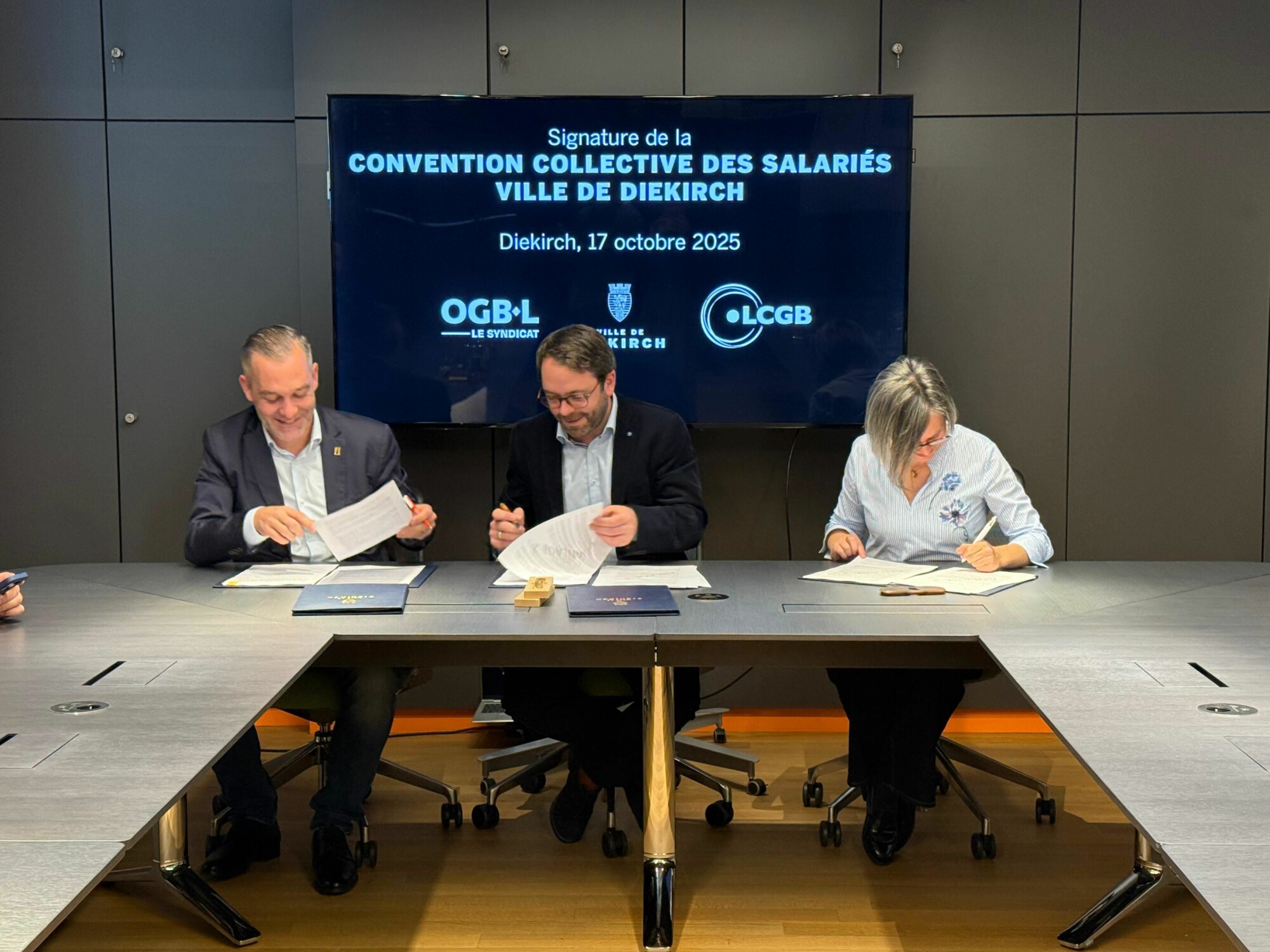 Le 17 octobre 2025, les syndicats LCGB et OGBL et la Ville de Diekirch ont signé une nouvelle convention collective de travail qui améliore les conditions de travail des 110 salariés tout en respectant les exigences d’une gestion efficace des services communaux.