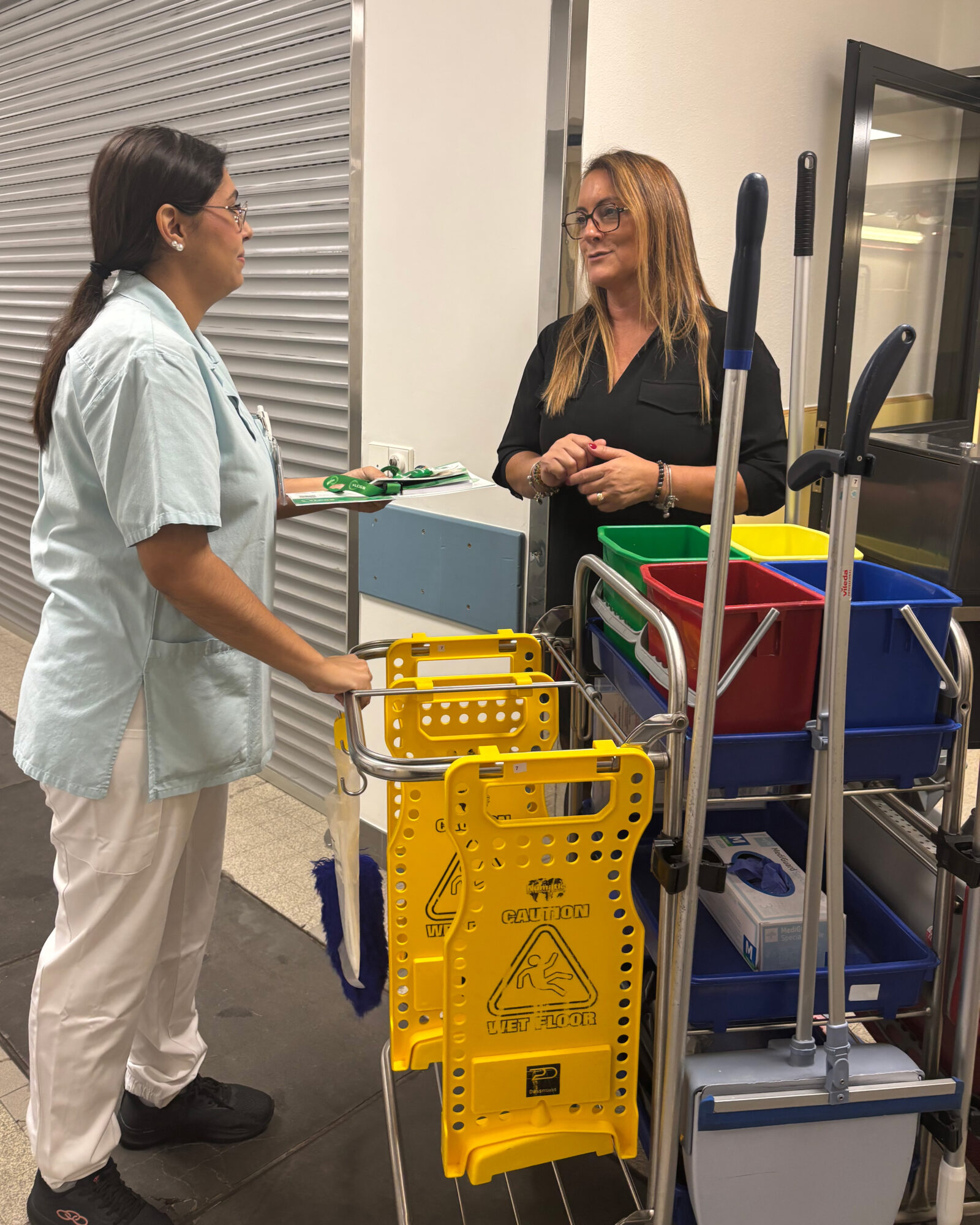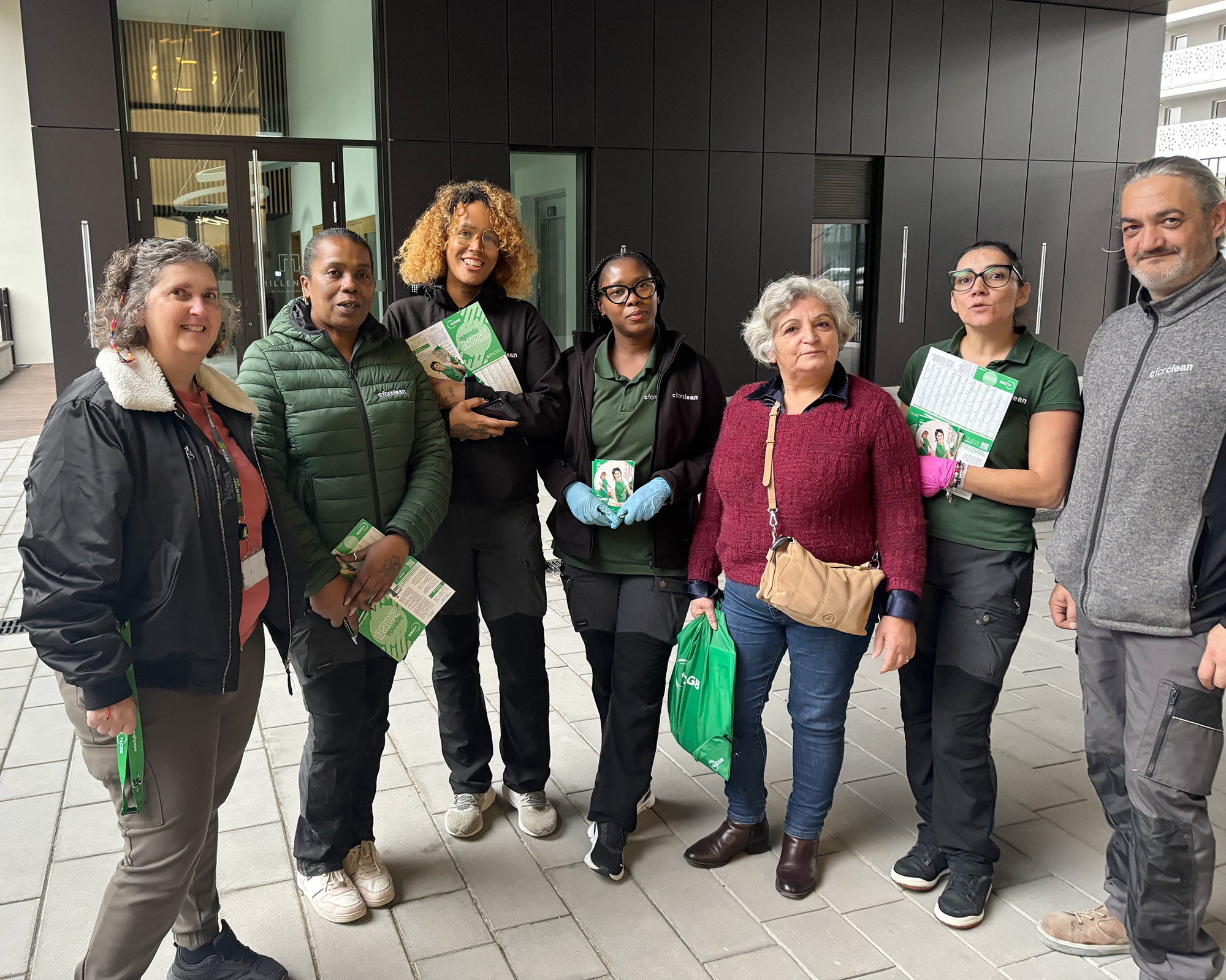 Lors d’actions de distribution organisées dans tout le pays, les délégués de Dussmann Services, Wisag, Atalian et CForClean ont informé les salariés des discussions politiques actuelles sur le temps de travail et les ont invités à la grande conférence des délégués qui se tiendra le 2 décembre 2025.