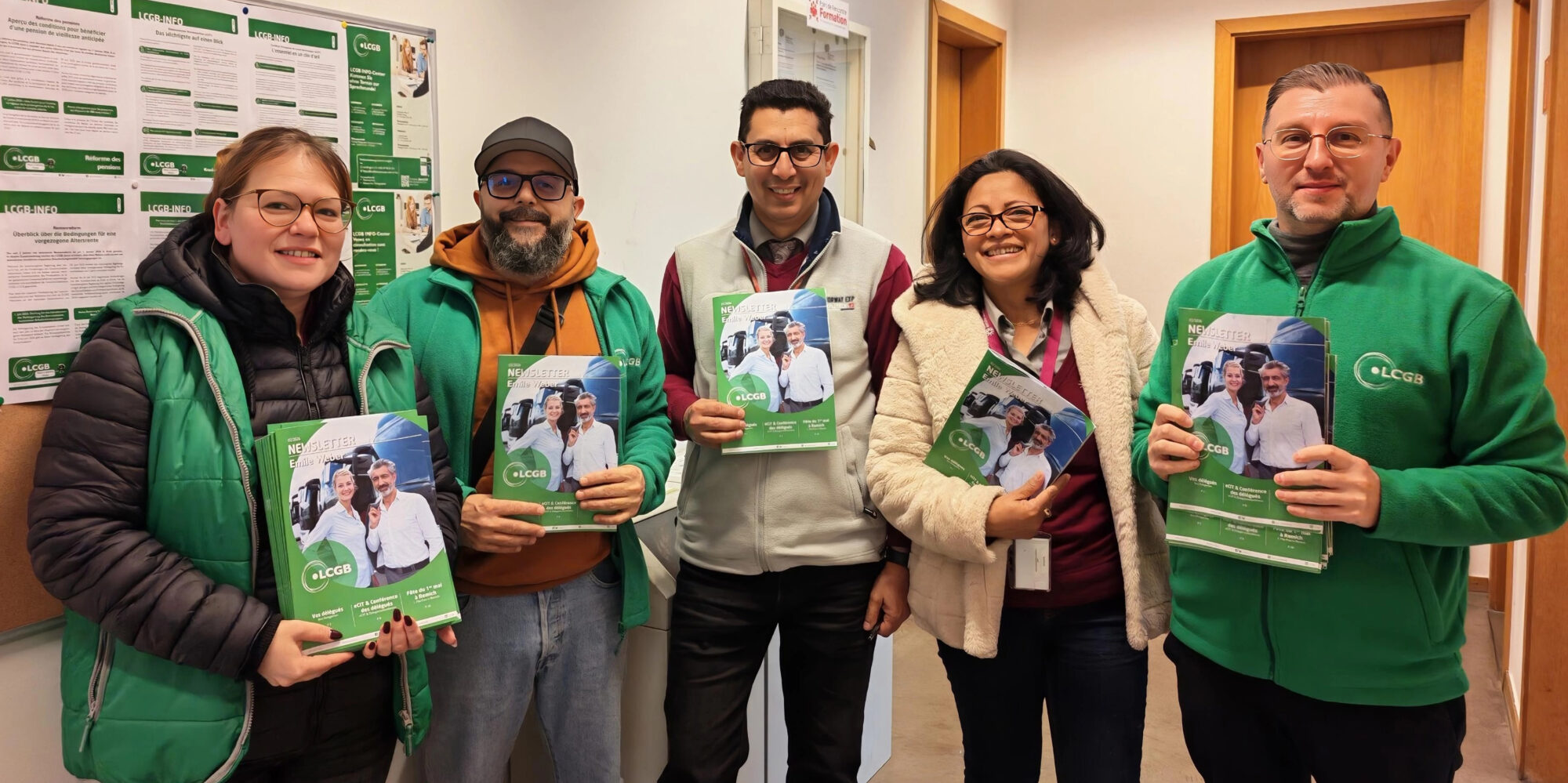 Le secrétaire syndical du LCGB, accompagné du président de la délégation du personnel chez Emile Weber et de la déléguée à la sécurité et à la santé, a mené une large action de distribution au sein de l’entreprise afin de mobiliser massivement les salariés en vue de la traditionnelle fête du 1er mai.