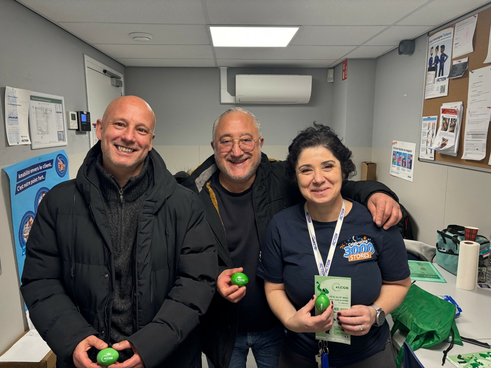 En vue de Pâques, les secrétaires syndicaux et les délégués du LCGB-Services & Commerce ont distribué des œufs de Pâques aux salariés chez Action et Circle K.