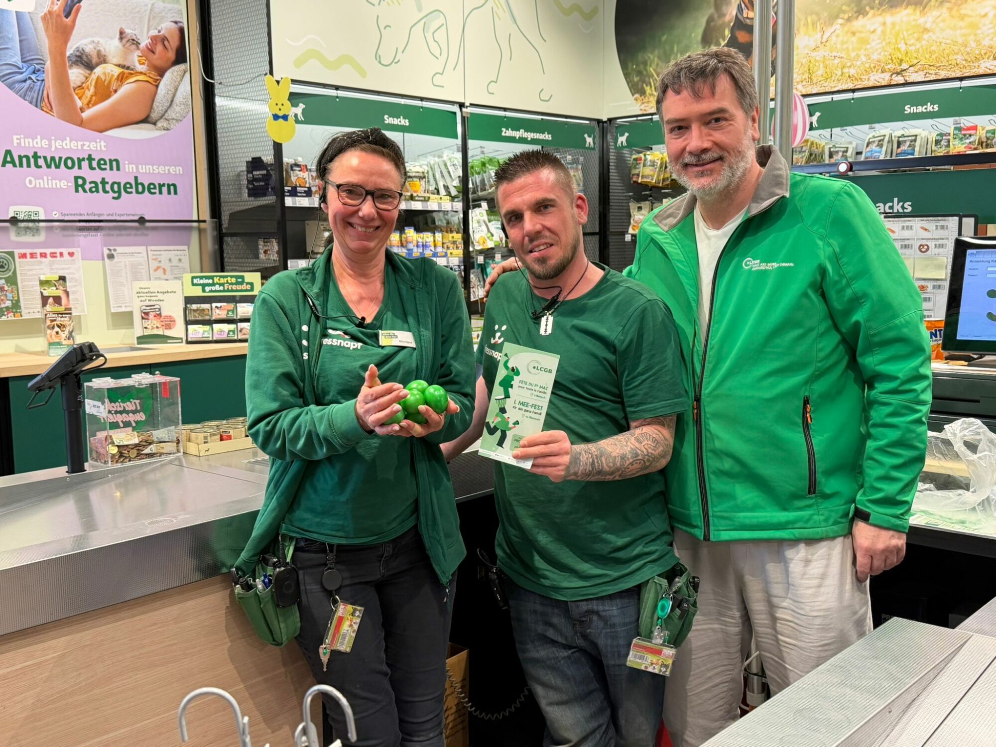 En vue de Pâques, les secrétaires syndicaux et les délégués du LCGB-Services & Commerce ont distribué des œufs de Pâques aux salariés chez Delhaize, PC Tank et Fressnapf. Ces rencontres ont également permis d’échanger sur la politique actuelle du gouvernement, qui s’attaque aux droits des travailleurs.
